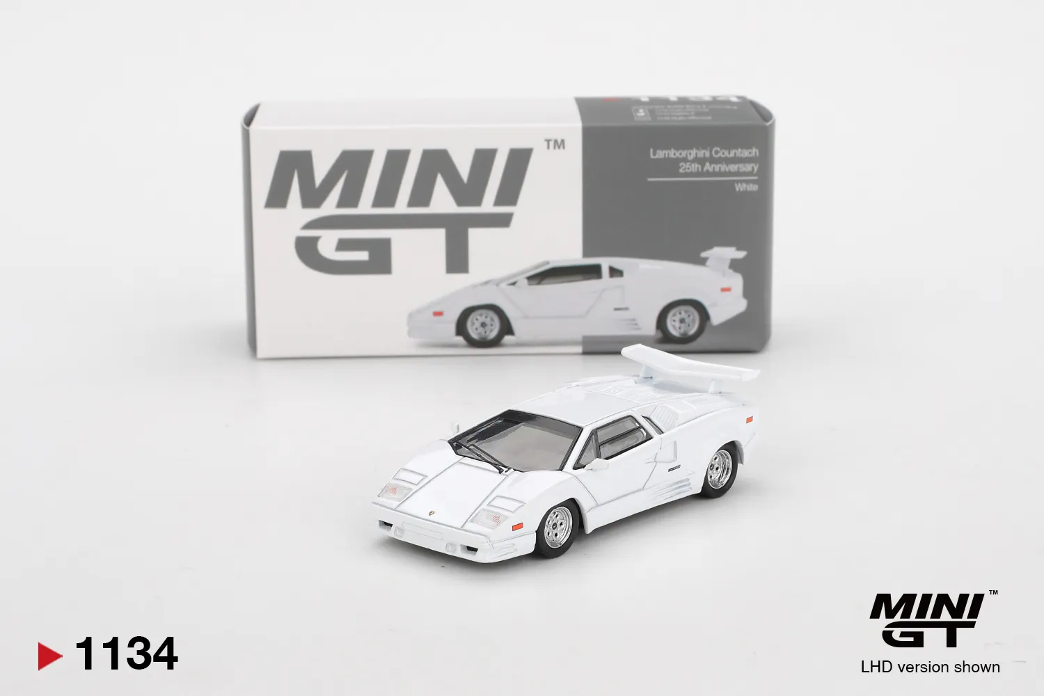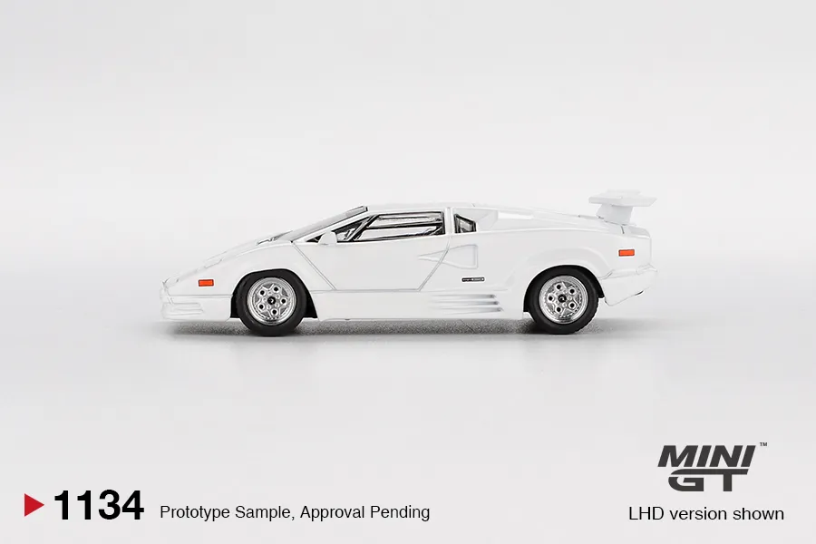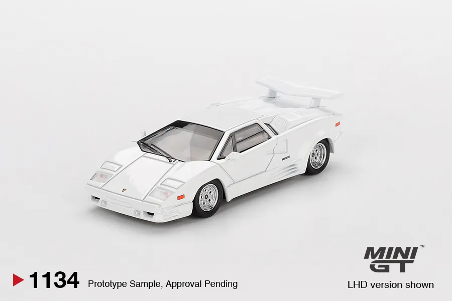 MINI GT 1:64 Lamborghini Countach 25th Anniversary White MGT01134-CH — коллекционная модель автомобиля масштаба 1:64 от бренда MINI GT. Подходит для коллекции, витрины и оформления диорам.